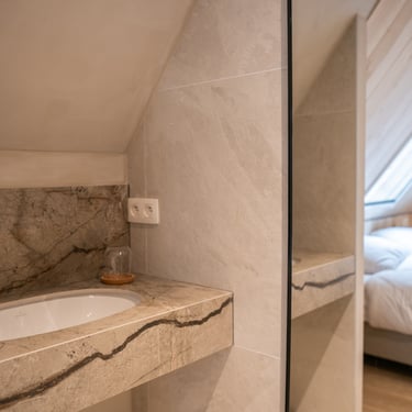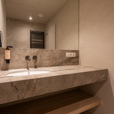 Wij zijn trots dat we aan dit unieke project mochten meewerken, met een verfijnde selectie uit het Marazzi Group-𝗮𝘀𝘀𝗼𝗿𝘁𝗶𝗺𝗲𝗻𝘁. De gekozen kleuren en materialen sluiten perfect aan bij het groene karakter van de omgeving en versterken het warme, authentieke gevoel dat WOODZ uitstraalt.